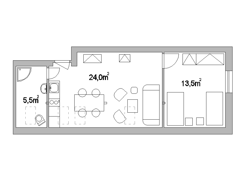 Samozřejmostí je vlastní sociální zařízení (WC, umyvadlo, sprchový