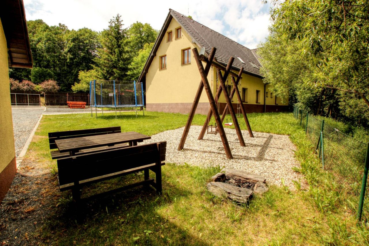 pískoviště pro děti, houpačky, venkovní trampolína se záchytnou sítí,