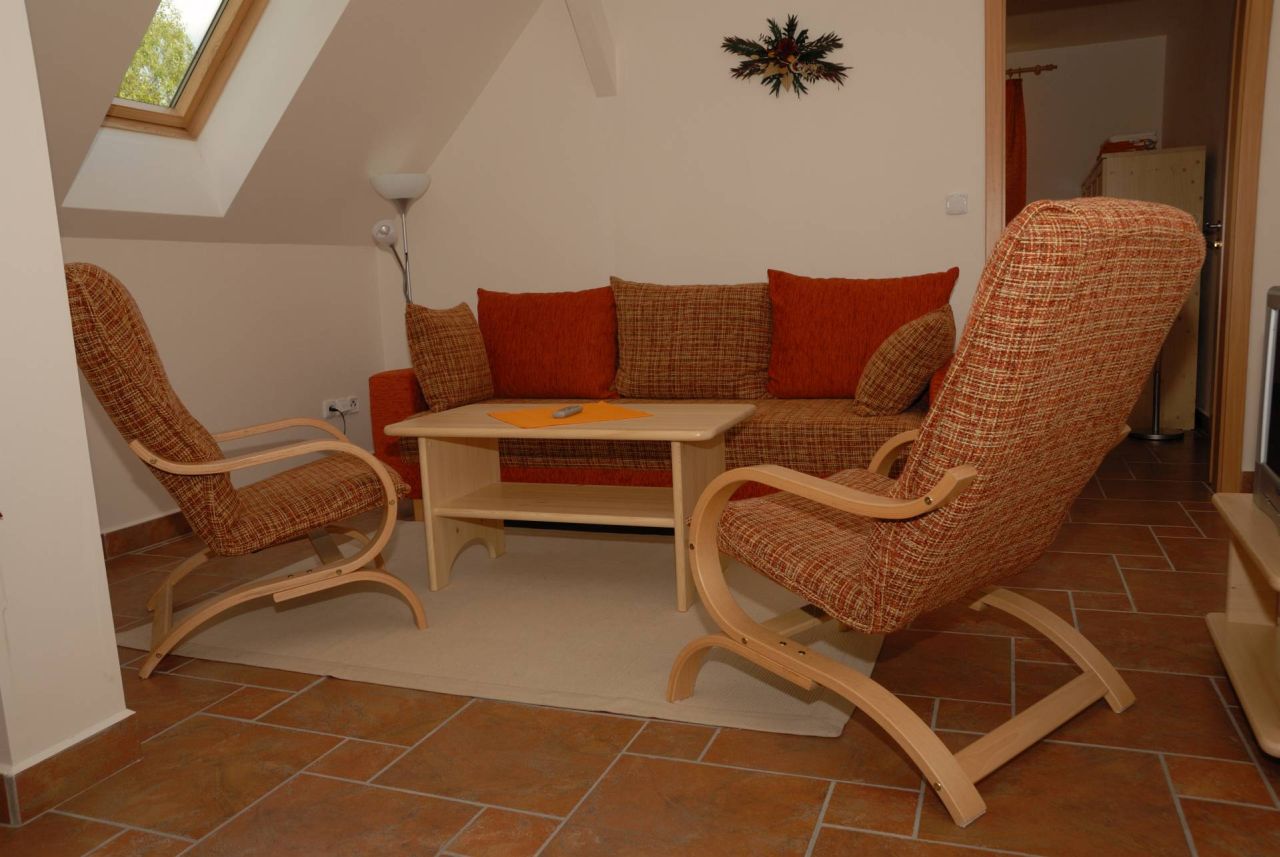 sedací soupravy s křesly, umístěné ve všech apartmánech.
