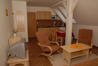 V penzionu se nachází 8 apartmánů, max. pro 30 osob (18 lůžek a