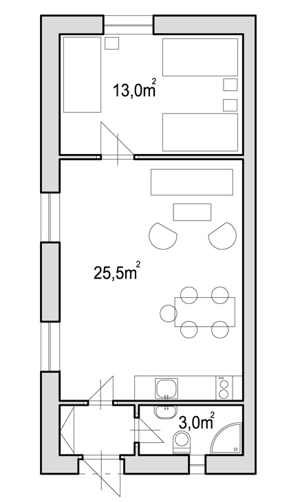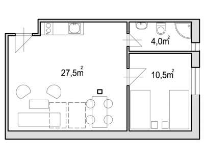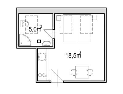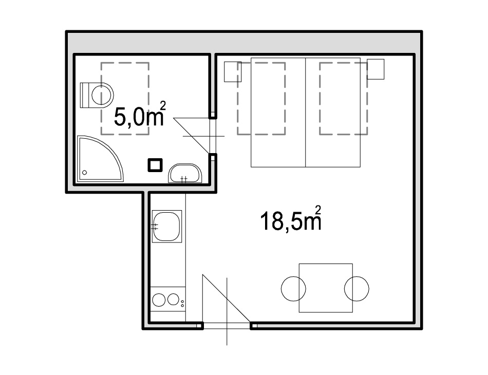 židličky. Dva apartmány typu 2 + kk mají svůj vlastní vstup přímo