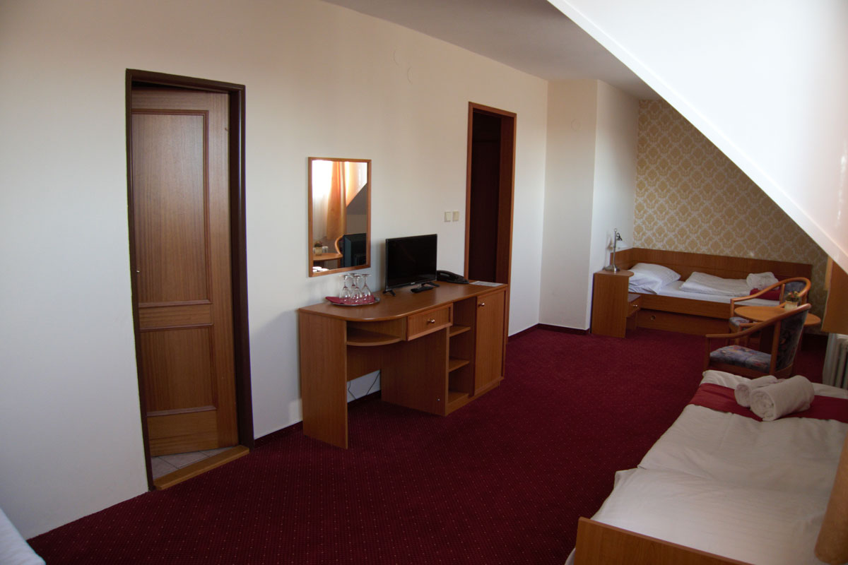 V jednolůžkových až čtyřlůžkových pokojích standard s vlastním sociálním zařízením. Na pokojích je k dispozici psací stůl, křesla, TV, šatní skříň, ručníky, osušky, hygienické potřeby a fén. Samozřejmostí je Wi-Fi síť.